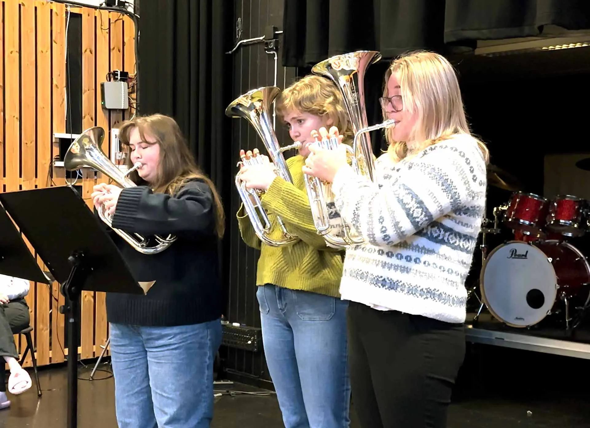 Besetninga i brassbandet rullerer, det vil seie at ingen har ein fast plass gjennom heile skuleåret. I staden har ein 4 – 5 ulike besetningar slik at kvar og ein får variasjon og får prøvd seg på ulike stemmer. I tillegg til øvingane med brassbandet får du spelt i mindre ensemble, på fellestimar med di eiga instrumentgruppe, åleine med akkompagnatør og på einetimar med læraren din.