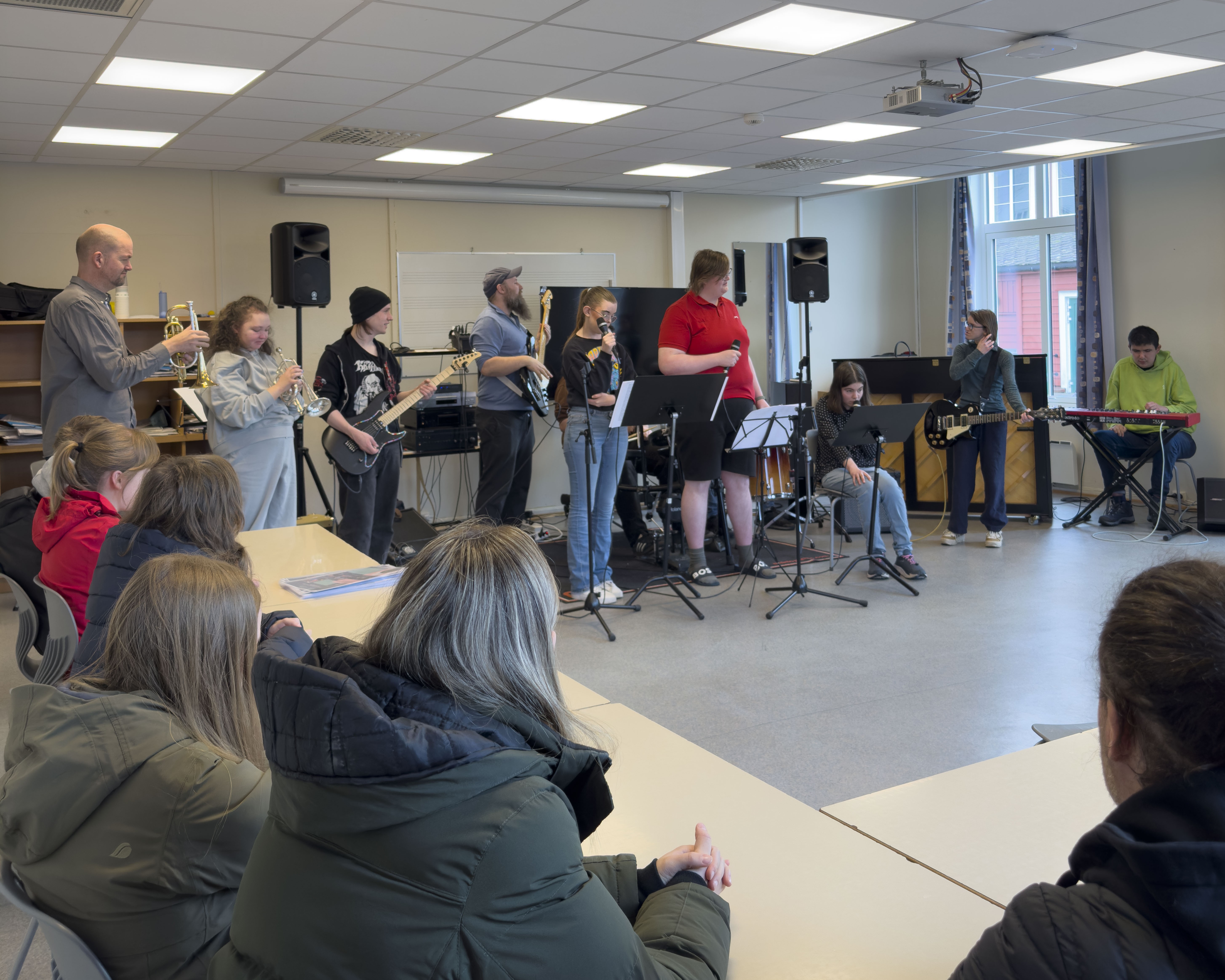 Musikk, bu og fritid leverte både rockestemning og rolege vibbs på konsert dei arrangerte for tilrettelagd linje på Stend vidaregåande skule